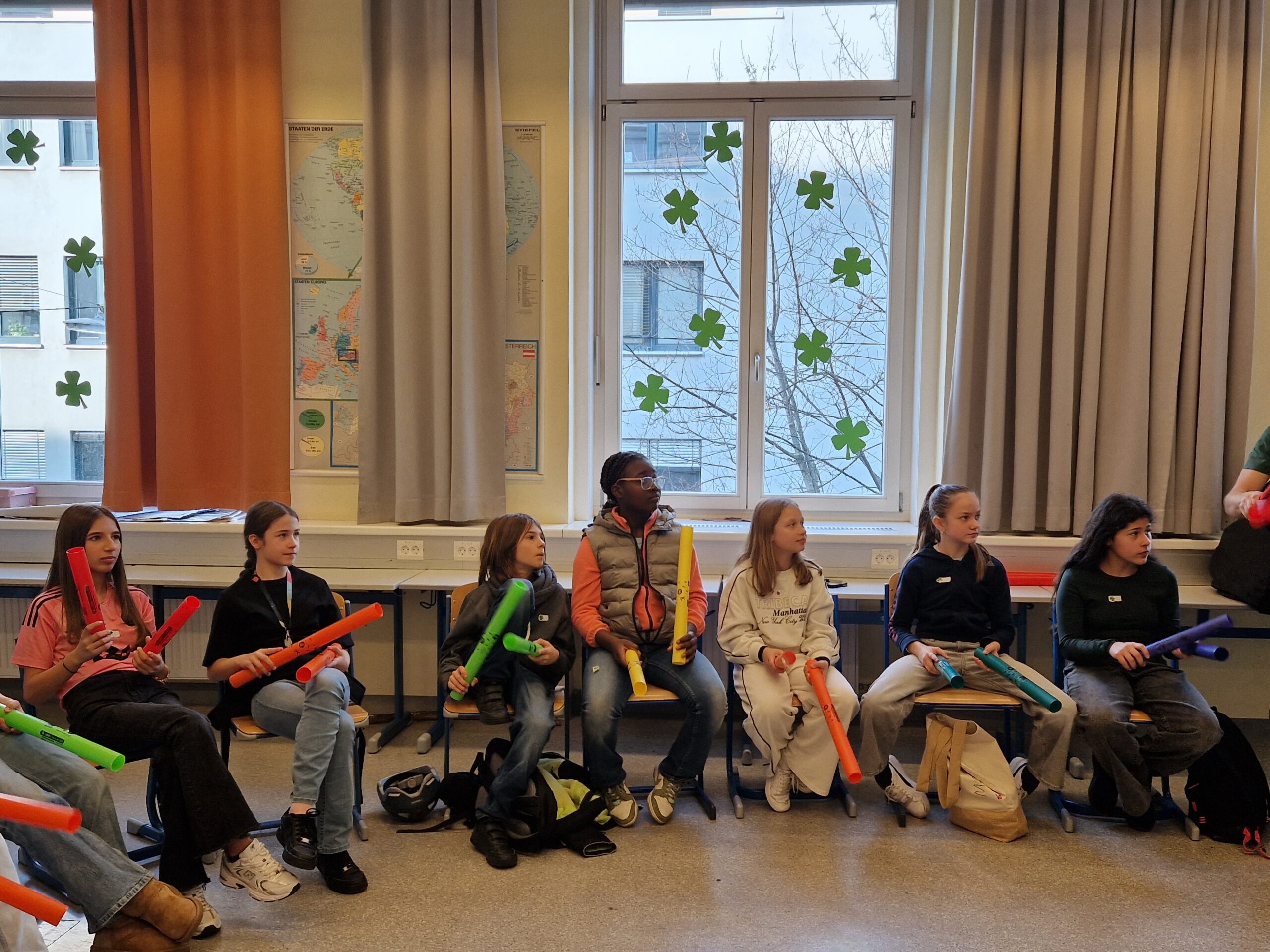 Für gute Stimmung sorgte die Station „Feel the beat – Feel the joy!“, während im Workshop „Spotlight: Dein Glücksmoment“ durch theaterpädagogische Übungen Ausdruck, Mut und Gemeinschaft gefördert wurden. Bei „Sonnenstärke – Strahlen, die in dir stecken“ setzten sich die Schüler:innen mit ihren persönlichen Stärken auseinander – die gestalteten Sonnen sind nun als „Galaxie der Stärken“ im Schulhaus zu sehen.